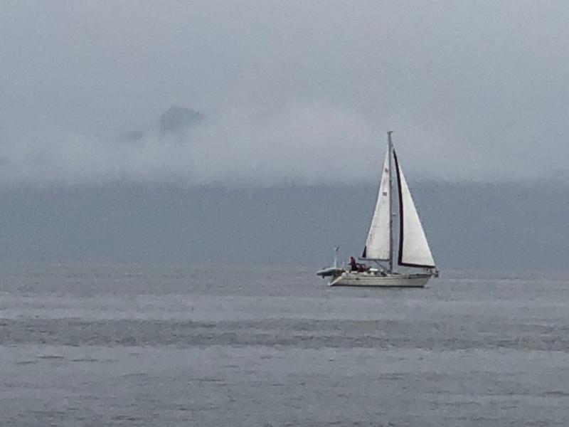 Romance made the starting line and sailed off Spruce Island in light breezes from the southeast for half the day. All others elected to motor on that morning, though Surprise sailed around Yasha Island.
